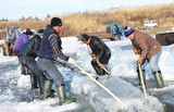 Travel: Farmers drag ice in chilly environment in Harbin