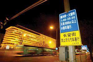The traffic on Chang'an avenue has been tense, with some 7,000 vehicles per hour. With the list of the ban, some roads will become more congested, said Zhang Jingchun, spokesman for the city's transportation bureau.