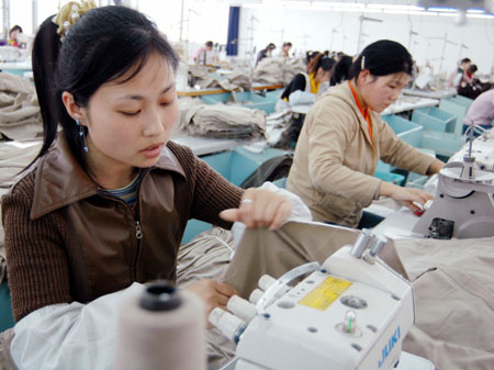 A worker makes clothing for export. One-third of the world's textiles are made in China, saying Xu Kunyuan, vice president of China National Textile Industry Council at China Textile Printing Technology Forum. The forum was held in Hangzhou on May 19, the development of China's Textile Printing industry meet the growing demand all over the world. [newsphoto] (For more biz stories, please visit Industries)