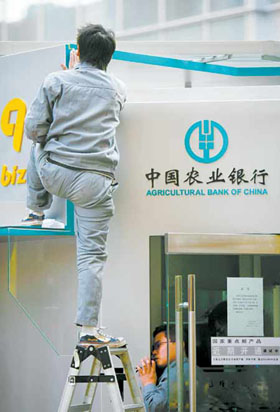 Last year, as much as 26.2 per cent of the ABC's 2.8 trillion yuan (US$356 billion) loans were non-performing. The Chinese Government has encouraged the nation's biggest banks to restructure and sell shares, so that adherence to international accounting, disclosure and capital adequacy standards can improve their competitiveness, in order to deal with challenges brought by the full opening of the financial market. Reforms of Bank of China, China Construction Bank and the Industrial and Commercial Bank of China have already resulted in some progress, with their capital adequacy ratios reaching 12.4 per cent, 13.15 per cent and 10.74 per cent respectively by the end of June. Meanwhile, their respective bad loan ratios dropped to 4.19 per cent, 3.51 per cent and 4.10 per cent by that time, according to Zhou's report. But Zhou told legislators that further reform is required at the three lenders, stressing that they "should further improve corporate governance, deepen internal restructuring and speed up the reform of management mechanisms." Meanwhile, in order to support the reform of financial institutions, the government will step up other related reforms, including reform of the taxation system for commercial banks, the establishment of a deposit insurance system, and the construction of a social credit system.