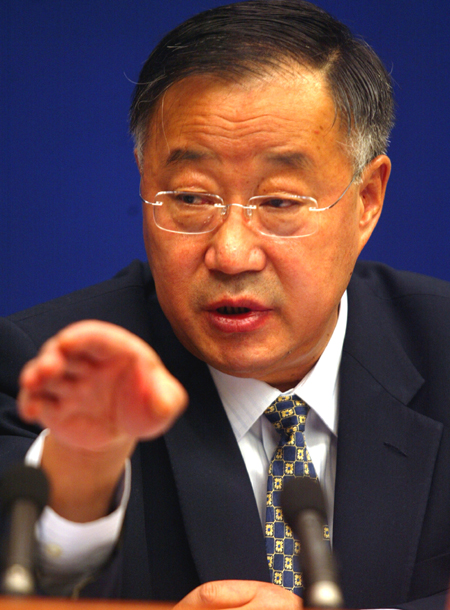 Qin Dahe, director of the China Meteorological Administration, makes a point at a press conference in Beijing yesterday. [China Daily]
