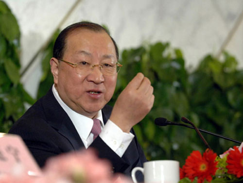 Finance Minister Jin Renqing gestures at a press conference during the annual session of the National People's Congress in Beijing March 9, 2007.