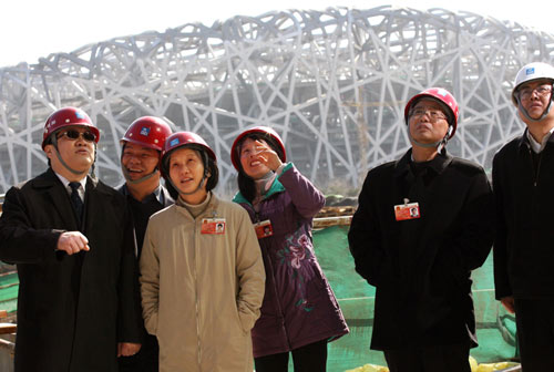 of the Bird's Nest the main venue for the 2008 Beijng Olympics in the background