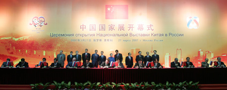 $4.3 billion agreements signed(China Daily)Updated: 2007-03-28 11:24 Chinese and Russian enterprises signed 21 agreements and contracts worth $4.3 billion after the China National Exhibition was inaugurated in Moscow yesterday.