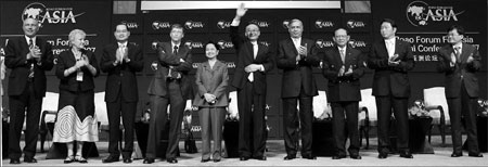 Delegates take part in the opening ceremony for the Boao Forum on Saturday in Hainan.