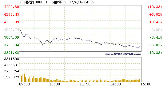 Stock market sees biggest single-day slump in 10 years, 06/04By Li Zengxin (chinadaily.com.cn)Updated: 2007-06-04 15:26