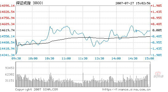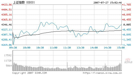Updated: 2007-07-27 17:18 In spite of heavy overnight losses on Wall Street and the European markets, major indices in the Chinese stock market managed to recover from a lower start and closed almost flat. Although the index didn't conclude the week with another new high, the market's upward trend is unshakable – a belief held by investors both at home and abroad. Reflecting the overseas plunge on Thursday, the Shanghai Composite Index opened at 4315.37, down 0.72 percent. After a quick dive to the day's lowest of 4268.79 several minutes later, the index swung upward to the psychologically important 4300-point level. It ended the week's trading at 4345.36, a slim decline of 1.1 points from Thursday's close, although this historic week has witnessed a 313-point gain together with a record high. The Shenzhen Component Index opened at 14518.81, down 100 points from its previous close. But it also managed to reclaim most lost ground and closed at 14614.1, down only 0.04 percent. Shanghai Composit Index ![]() ![]() Transaction value of the Shanghai and Shenzhen markets reached 139.2 billion yuan and 75.9 billion yuan respectively, slightly higher than the last trading day, with 1005 stocks closed up, 136 down, and 318 flat. In a related move, the leadership of the Communist Party of China held an economic meeting on Thursday, discussing the current economic situation and calling on some local governments to prevent China's blistering economy from overheating. Policies encouraging energy saving and pollution emission cut were also reiterated on the meeting, which was well echoed by the market today. In contrast, Hong Kong stock markets failed to shake off negative impacts from overseas markets. The benchmark Hang Seng Index lost 2.76 percent on Friday and closed at 22570.41. Analysts said the robust mainland indices are great reflection of investors' confidence in the Chinese economy. Although some people used to be worried about the short term trend during the correction of the past month, few had ever doubted the nation's economic future. When negative factors or prospects are smashed or fully absorbed by the market, positive ones like sound corporate earnings and appreciation of renminbi began to take greater effect and drew the indices to a record high. This optimism comes not only from Chinese investors. Fund manager and investment author Jim Rogers surprised people on Thursday by saying that China's bullish stock market might last 80 years. Although an exaggeration, the words drew international attention to the Shanghai and Shenzhen markets.
