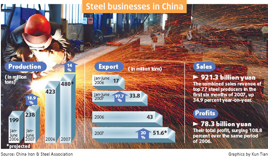 China has adopted measures since last year to control steel exports as part of its drive to tame the trade surplus and prevent trade conflicts with other countries. In the first six months of this year, the nation's trade surplus jumped 84 percent to $112.5 billion.