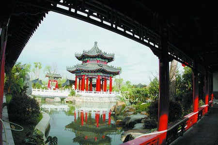An outer view of the Suzhou Garden in the South Chinese style area. [chinadaily.com.cn]