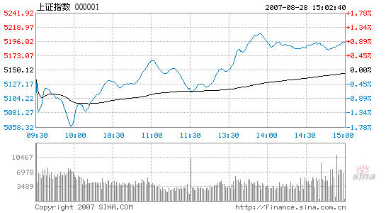 The Shanghai index slid after opening lower at 5,134.14 points, and hit a low of 5,058.45. Then it turned around to climb steadily, but dipped again in the last half-hour of the morning session. In the afternoon, it reclaimed the lost ground. The spread between the lowest point and the highest 5,209.51, at the mid-afternoon session, grew to 151 points, the largest since last Monday. Finally, the index stopped at 5,194.69, up 44.57 points or 0.87 percent from yesterday. Of all the A shares in Shanghai, 331 went up, 444 closed down and 67 ended flat.