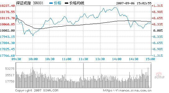 The Shenzhen Component Index also opened higher at 18,089.54, and ended at 18,073.76, up 71.76 points or 0.4 percent, failing to break the record closing reached this Monday. It went through the day in a range between 17,951.78 and 18,225.61.