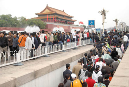 Beijing sees 300,000 tourists on first day of National Day holiday(Xinhua)