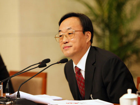Liu Jingmin, vice-mayor of Beijing and executive vice-president of the Beijing Organizing Committee for the Beijing Games, talks about the preparations for the Games in Beijing October 19, 2007. [Xinhua]