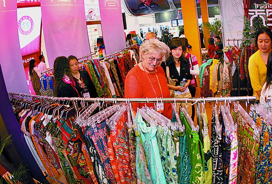 Visitors browse the racks at the 11th China International Fashion Trade Fair opened yesterday in Ningbo, Zhejiang Province. The event attracts people from 57 countries and regions. [China Daily]