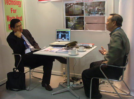 Carbon Forum AsiaUpdated: 2007-11-12 10:21 ![]() Two participants talk about the feasibility of a heat recovery project at the trade show, a side event of Carbon Forum Asia, which opened in Singapore on November 6. [chinadaily.com.cn]