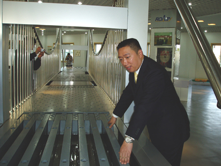 Lai Qingguo, sales supervisor of Ningbo Roaby Scientific and Technological Industry Group, explains the product in Ningbo Free Trade Zone, East China's Zhejiang Province, on November 13, 2007. [chinadaily.com.cn]