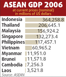 The agreement is another step towards the development of a free trade agreement (FTA), earmarked for 2010. Once ratified, the China-ASEAN FTA will be the world's largest, encompassing some 1.7 billion consumers with an estimated total trade figure of about $1.2 trillion. "I wish to reiterate that it remains a key foreign policy goal of the Chinese government to consolidate and develop its Strategic Partnership for Peace and Prosperity with the ASEAN," Wen said in a keynote speech at the 11th ASEAN Plus China (10+1) Summit. To strengthen potential win-win benefits and common development, Wen called on both sides to focus on a number of key issues: Enhance political trust and policy coordination. Upgrade business ties and cooperation. Cooperation on non-traditional security fields. Provide support for the development of the ASEAN Community and integration. Expand social, cultural and people-to-people exchanges. China and ASEAN have signed goods and services trade agreements and are now negotiating one for investment. Bilateral trade is estimated to reach $190 billion this year and exceed $200 billion next year. Mutual investment has reached $45.4 billion.