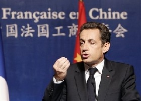 France's President Nicolas Sarkozy delivers a speech to businessmen at the Franco-Chinese Chamber of Commerce in Beijing, November 25, 2007, on the first day of a three-day official visit in China. [Agencies]