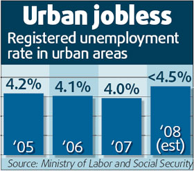 Updated: 2008-01-22 07:30 The national urban and township unemployment rate was reduced to 4 percent last year, thanks to the creation of more than 12 million jobs and despite more people entering the workforce, a top labor official said yesterday. The number of jobs created exceeded the target of 9 million set at the beginning of last year, Zhai Yanli, vice-minister of Labor and Social Security, said at a press conference.