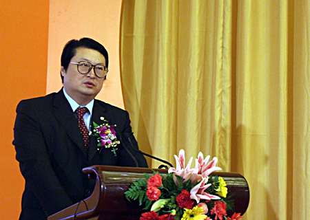 Hu Wenming, vice general manager of AVIC I and chairman of Joy Air, makes a speech at the establishment ceremony of Joy Air Co Ltd on March 28 in Beijing. [chinadaily.com.cn]