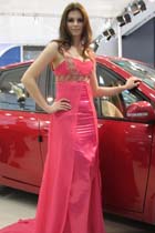 Model poses next to Lotus car