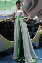 Model poses next to IAT 'Zu' electric concept car