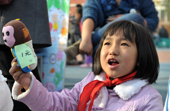 A flea market named "Happy Life Experience Site for Little Fish" was held on Oct 25, 2012 at the Hupan campus of No 21 Primary School, Yinchuan city, Ningxia Hui autonomous region. Pupils traded their toys, school supplies and books.