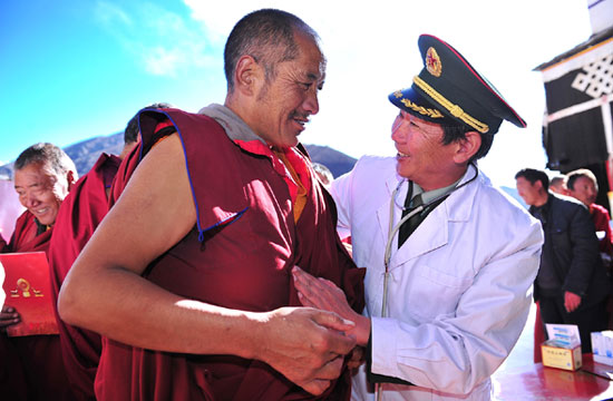 Dr Li Suzhi, a military surgeon, also known as the "Menba General" (translated to mean 'general practitioner' in Tibetan) visited and gave medical advice to local residents and monks on Oct 27, 2012 in Maizhokunggar and Dagze county, Lhasa, Tibet autonomous region. Dr Li was warmly welcomed by the general public.