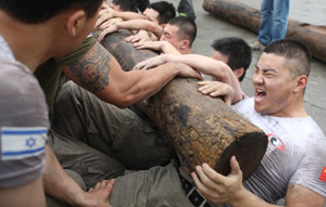 Photo taken on May 24, 2013 shows a model having her back painted with layout drawings of a house as a method to attract customers during the 55th Housing Fair held in Nantong city, East China's Jiangsu province. [Photo/Xinhua]