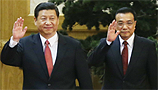 Top Chinese leadersXi Jinping(C),Li Keqiang(3rd R), Zhang Dejiang (3th L), Yu Zhengsheng (2nd R), Liu Yunshan (2nd L), Wang Qishan (1st R), Zhang Gaoli (1st L) attend the third Plenary Session of the 18th CPC Central Committee in Beijing, capital of China, Nov. 12, 2013. The session lasted from Nov. 9 to 12. [Photo/Xinhua] |