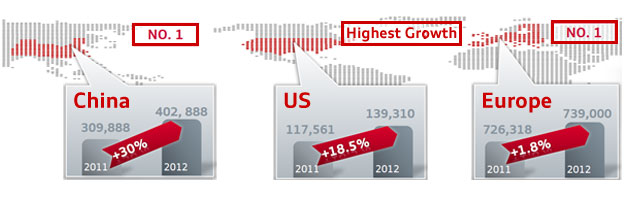 The sales of FAW-VW Audi is more than 400,000 units in 2012, up 30 percent year-on-year, achieving a leading edge of 100,000 units over its competitors.