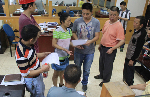 Farmers gather at the living room of Village Secretary Nan Dongliang's house to watch the stock market on May 28, 2015 in Xingping village, Shaanxi province. There are over 100 farmers in the village investing in the stock market to test their fortunes, aging from 27 to over 60. [Photo/CFP]
