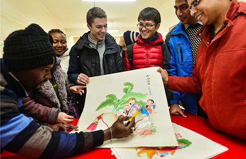 A man buys decorative Chinese couplets for the Lunar New Year celebration at a market in Liaocheng, East China's Shandong province, Jan 14, 2016. As the Chinese Lunar New Year comes closer, people are busy preparing goods for the festival. [Photo/IC]