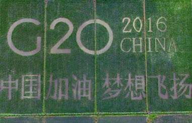 From rice paddy to cars,artistic G20 logos welcome Hangzhou summit
