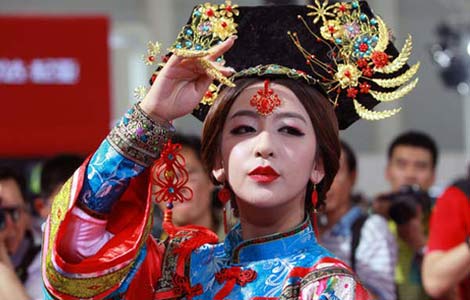 At the 2012 Tenth Central China International Auto Show in Wuhan, exhibitors do their best to attract the attention of visitors.