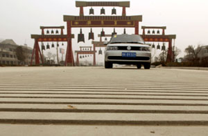 A model poses with a sedan at the Yangzhou International Auto Show in Yangzhou, Jiangsu province on May 17, 2012.