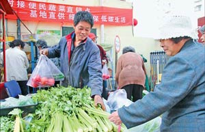 It is 8:20 in the morning, and Liang Jianping is busy tidying up his small vegetable booth at the gate of the second community of Yulin Dongli, in Fengtai district.