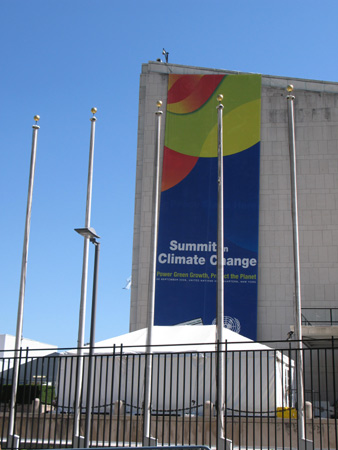 Several police vans parked on the streets near the UN buildings, and policemen with patrol dogs could be seen in nearby blocks. The New York City police authorities announced traffic control in the vicinity of the summit venue, which began at 2 am on Sunday (US time), but traffic flow on the First Avenue, by which the UN headquarters stands, did not seem thinner than the day before. Tour buses stopped by one after another. Outside the UN compound, a tour guide surnamed Liang was trying to comfort several complaining tourists, who found the UN tour had been canceled because of the upcoming events. "What you can see inside will be only conference halls, none of them as big as the Great Hall of the People in Beijing, which can hosts more than 10,000 people at a time," said Liang from Ritz Tour. A woman from Sichuan said she did not know the UN building would be closed to tourists beginning Sunday. "Otherwise I would have come yesterday". A UN security guard said the venue will be closed for tourists for the whole week during the session.