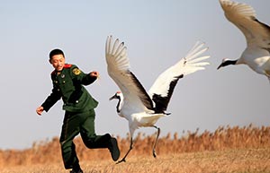Yancheng's border police have been deployed in such areas as Yancheng Coastal Wetlands over the past 30 years to protect wetland and wild birds.