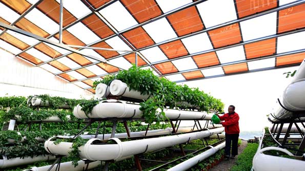 A new type of greenhouse with a solar power generated roof has been gaining popularity in Jimo, Shandong since last year.