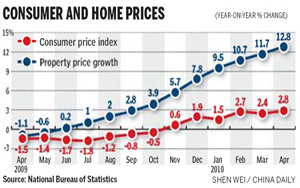 April consumer prices rose at the fastest clip in 18 months, which could result in banks' reserve ratio being raised in June and interest rates in the next quarter, analysts said.