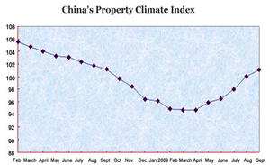 China's national property climate index, which reflects overall conditions in the sector, rose to 101.08, up 1.00 point from August, the National Bureau of Statistics (NBS) said in Beijing Thursday.