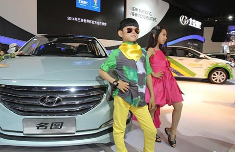 Child models are pictured at Taiyuan International Auto Show in Taiyuan city, North China's Shanxi province, on May 17, 2014. The show runs through Monday.[Photo/Chinanews.com] |