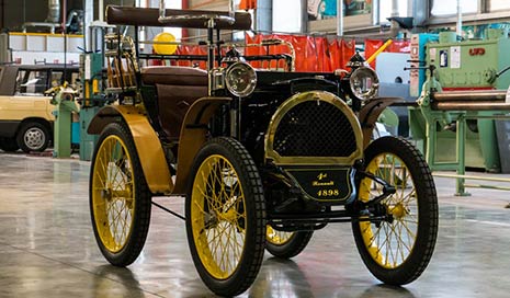 Renault classic antique cars were displayed in the company's workshop in Paris, France.