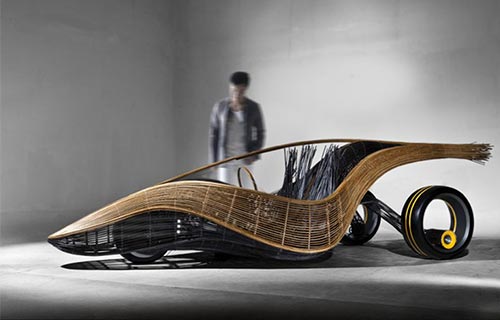 The concept car is made of bamboo that explores the possibilities of lightweight, sustainable designs for transportation using only natural materials.