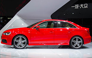 The Audi A3 sedans make their world premiere on April 20, 2013, at the Shanghai auto show. The front of the Audi A3 40 TFSI quattro is pictured on April 21, 2013