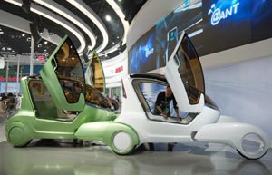 Chery's @ant New Energy concept car made its world premiere during the first media day of the 2012 Beijing International Automotive Exhibition (Auto China 2012) at the China International Exhibition Center in Beijing on April 23, 2012.