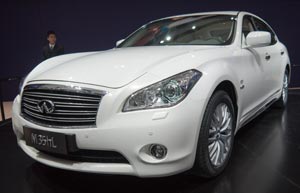 Infiniti M35hL made its world premiere during the first media day of the 2012 Beijing International Automotive Exhibition (Auto China 2012) at the China International Exhibition Center in Beijing on April 23, 2012.