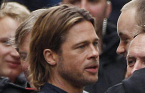 Pitt appears during the filming of 'World War Z' in Glasgow