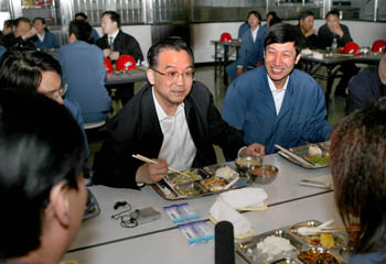 Chinese Premier Wen Jiabao swapped state rooms for a steel factory canteen,